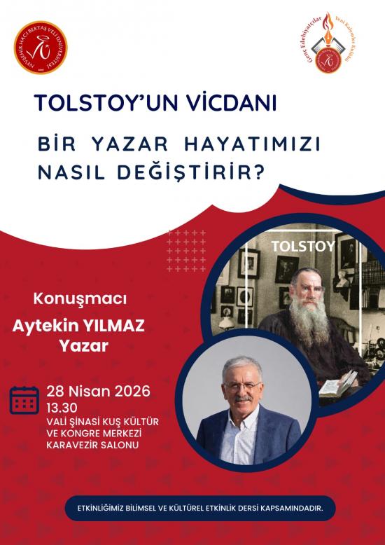 Üniversitemiz Fen Edebiyat Fakültesi, Rus Dili ve Edebiyat Bölümü ve Genç Edebiyatçılar Yeni Kalemler Kulübü ortaklığında 28 Nisan 2026’da iki aşamalı Tolstoy okuma etkinlikleri düzenlenecektir.